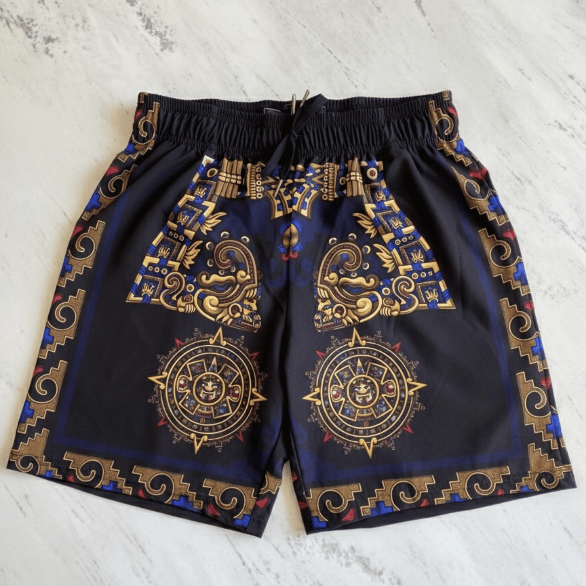 Board shorts inspired by Aztec culture, featuring an exclusive design full of detail and presence.
